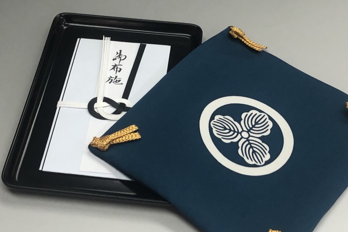 お布施という事は法事ごとという事になるかと思いますが、法事はお悔やみ事ではなく言ってみればお祭り事。とあるお客様はお布施を切手盆に乗せ掛袱紗を掛けお布施を差し出したところお寺様から「法事ごとを丁寧にすることは幸せになりますよ」とたいそうお褒め頂いたとのこと。