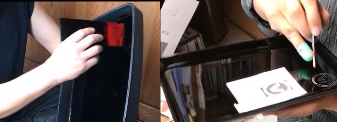 紋入れは切手盆の写真ですが広蓋も同じ職人が家紋入れを行っています。