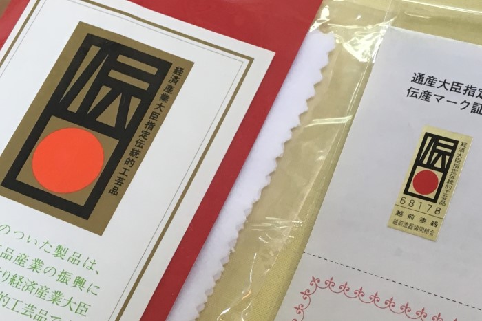 艶は過度に光ることなく、しっとりとした深みがあります。ただし外観としての派手さはなく、落ち着いた上質さを感じられる仕上がりです。今回の品には、通商産業大臣指定の伝統工芸品であることを示す証が付されており、