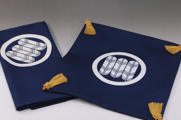 染め物の中でも広蓋と組み合わせる比較的大きい掛袱紗や風呂敷の場合、家紋の直径もそこそこの大きさがあるため、より隣接して描くことが可能です。