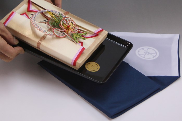 家紋入り袱紗と切手盆で渡す方法がベスト