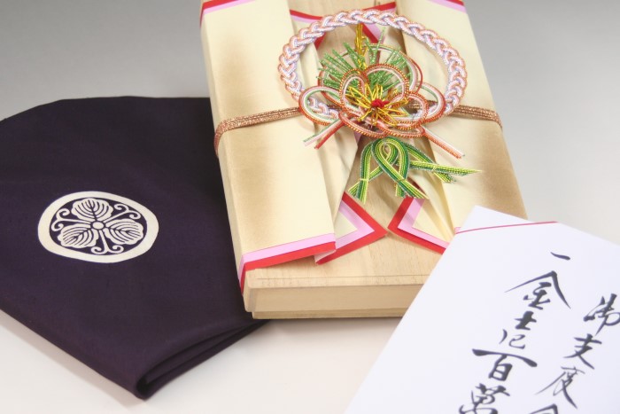 結納顔合わせで結納金やお支度金を渡す際には、家紋入りの袱紗を使用するだけでも、十分に礼儀を守った印象を与えることができます。袱紗の包み方や渡し方に気を配ることで、シンプルながらも失礼のないやり取りができます。